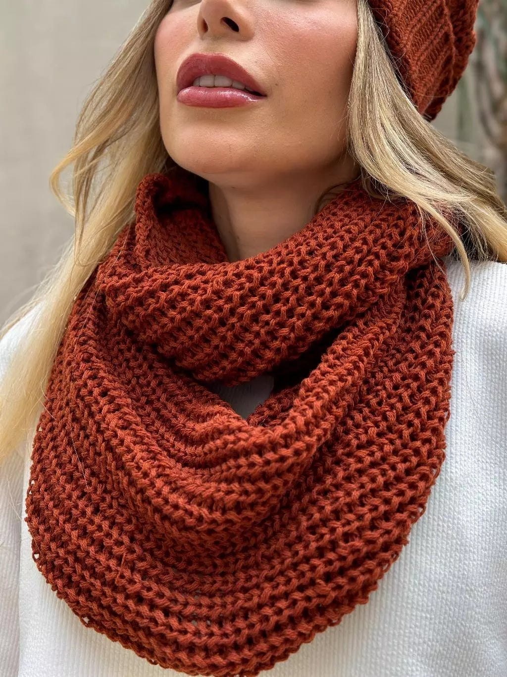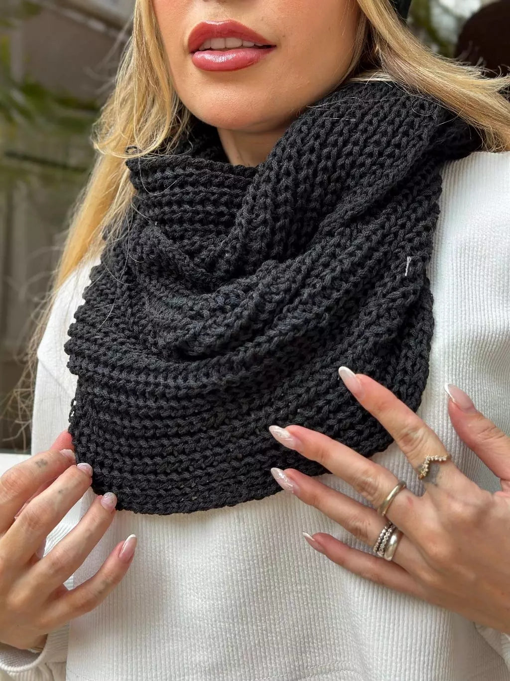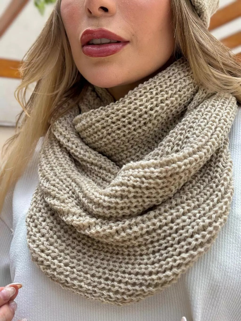 O Cachecol Feminino de Tricô em Lã com Duas Voltas é a escolha ideal para quem busca conforto térmico com um toque de estilo.