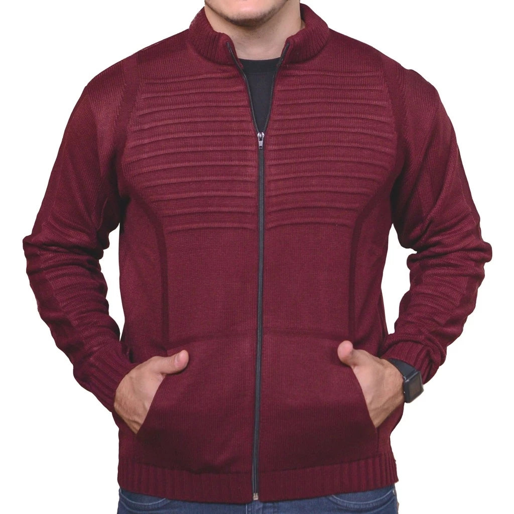 - 1x Casaco Masculino de Lã Tricot com Zíper e Bolsos