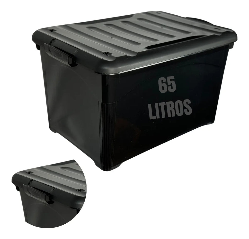 Com quase 100 litros de capacidade, esta caixa acomoda volumes generosos, otimizando o espaço em ambientes como casas, escritórios, depósitos e até mesmo em veículos para transporte de cargas leves.