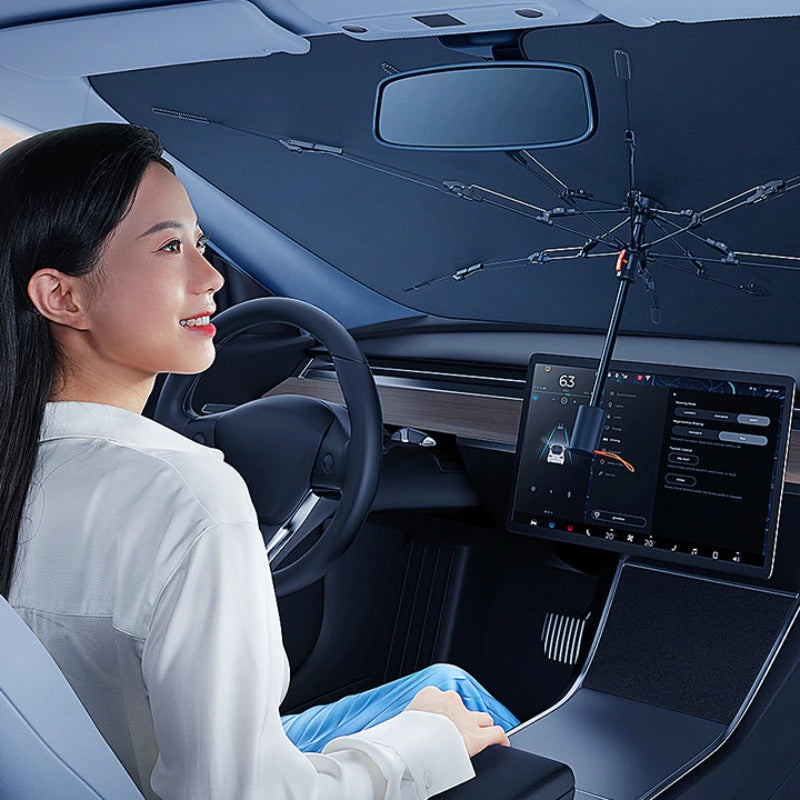 O AutoGuard foi projetado com uma estrutura retrátil semelhante a um guarda-chuva, capaz de bloquear até 99% dos raios UV.