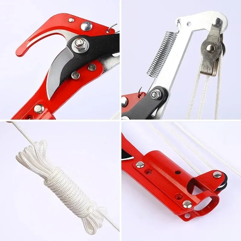 Já a tesoura by-pass, acionada por corda, é indicada para galhos de até 24 mm, oferecendo cortes limpos e precisos com mínimo esforço.