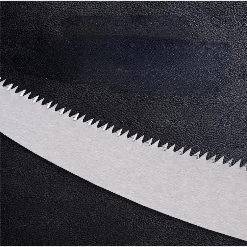 A lâmina da serra possui dentes cruzados que facilitam o corte, enquanto a lâmina da tesoura conta com cobertura antiaderente, reduzindo o atrito e prolongando a vida útil da ferramenta.