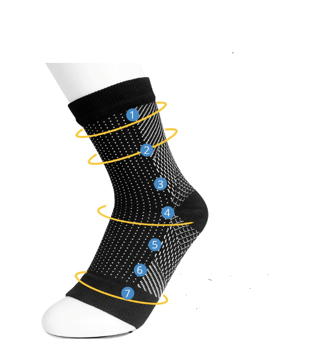 Com sua tecnologia de compressão graduada, a meia auxilia na circulação sanguínea, aumentando o fluxo de oxigênio para os músculos e reduzindo a produção de ácido lático.